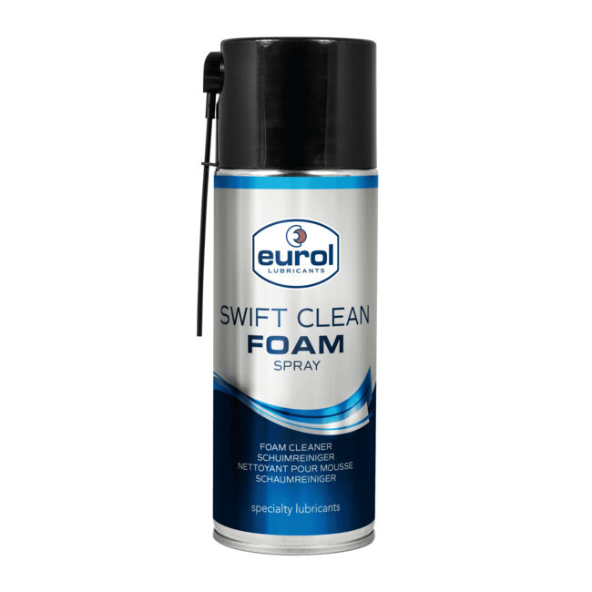 Eurol Swift Clean Foam Spray ist ein professioneller, multifunktionaler Schaumreiniger zum Reinigen und Entfetten von Glas, Kunststoff, Metall und anderen wasserbeständigen beschichteten Oberflächen. Durch die aktive Schaumwirkung haftet der Reiniger gut an der Oberfläche, wodurch Schmutz effektiv gelöst wird, ohne zu tropfen. Das Produkt trocknet streifenfrei und hinterlässt keine Rückstände.
