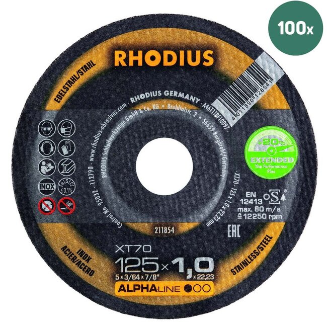 RHODIUS Trennscheibe Alpha XT70 125x1,0mm Edelstahl / Stahl - 100 Stück