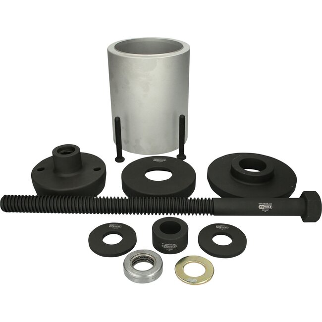 Ideally suited for disassembly and assembly of 3D bushings on SAF and Mercedes axles. Sturdy design. Trapezoid thread spindle for high removal power - drive 30 mm. Special tool steel.<br /><b>Application range / for:</b> <b>SAF</b> and <b>Mercedes</b> axl