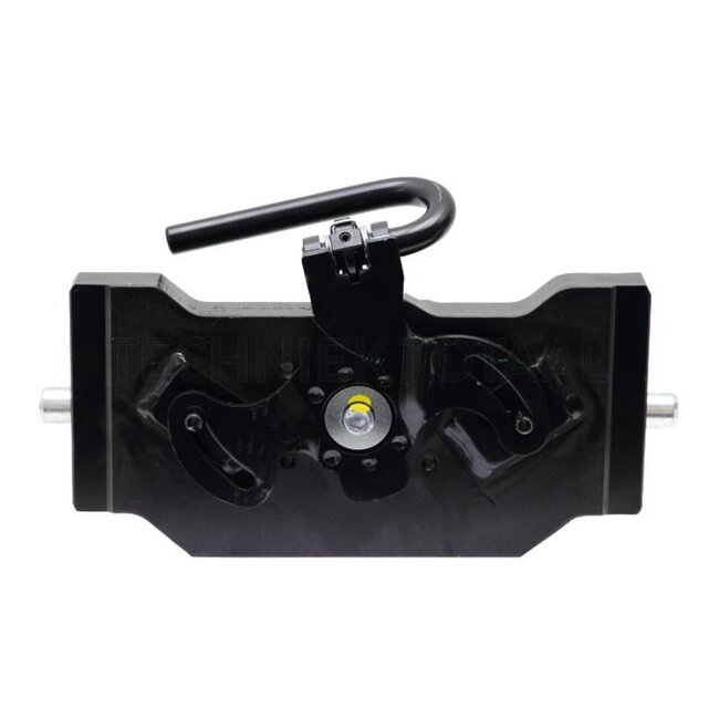 Load capacity: 2000 kg. D-value: 89,3 kN. Rail width: 336 mm. Hole pattern: 83 x 56 mm. Pin Ø: 22 mm. Guide width: 30 mm. Thread: M10. Colour: Black. Hole: M10 mm. Detent pin Ø: 22 mm.