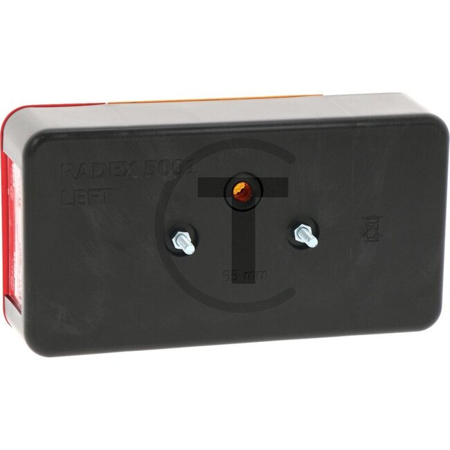 Bulb: 12V21/5WK / P21/5W, 12V21WK / P21W, 12V5WK / R5W. Connection: With grommet connection. Width: 194 mm. Form: Rectangular. Height: 104 mm. Hole spacing: 55 mm. Dimensions W x H x D: 194 x 104 x 60 mm. Depth: 60 mm. Fixing: M5. Installation location: L
