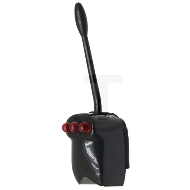 Version: Functions: centre position off, indicator left and right, with 3 red pilot lights, dual-circuit switch, brake/indicator changeover Strap fixing Ø 30 - 60 mm Flexible lever. 3 red pilot lights for 2 trailers and tractor.