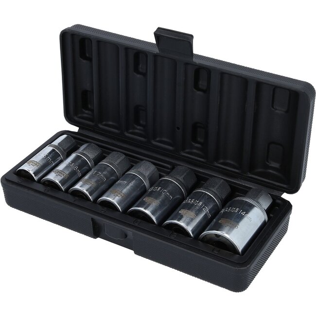 External hexagon drive. With right and left hand clamping function. Safe clamping due to 3 rollers. Stud screws can be screwed in or out without using counter nuts on the bolt. Also for extra long studs that will go through the through socket. Mirror poli