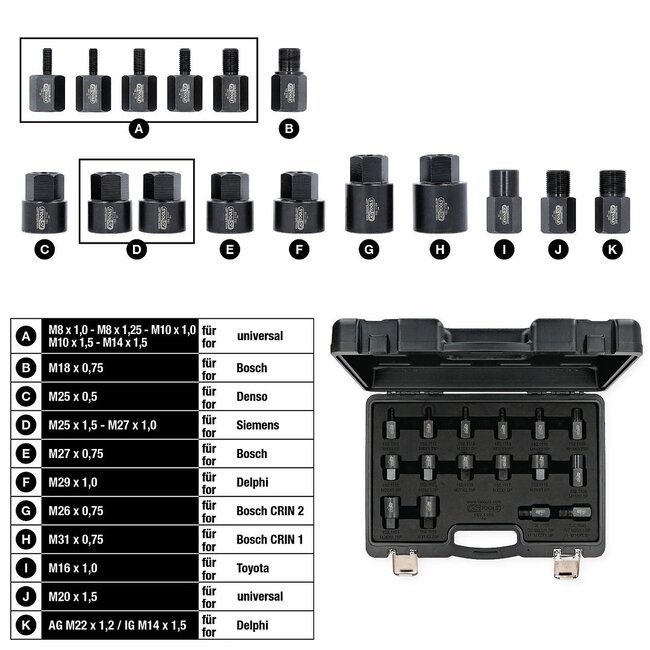 KS Tools Jeu d’adaptateurs à visser pour extracteur d’injecteur, 16 pcs - 152.1105