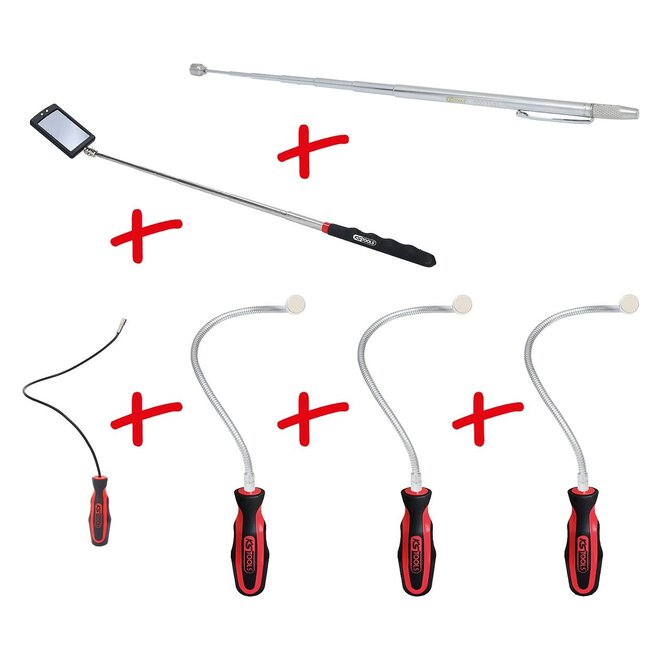 KS Tools Jeu de miroirs d’inspection et d’aimants flexibles et télescopiques, 6 pcs - 550.1090