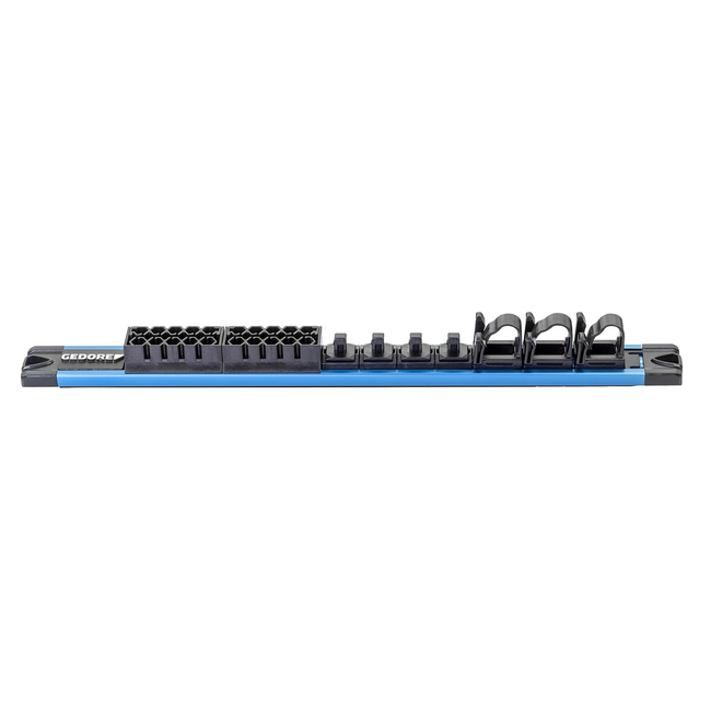 20 bitplaatsen. 1/4" inwendige zeskantaansluiting. 4 uitwendige vierkantaansluitingen 1/4" / 6,3 mm voor dopsleutelinzetten. Flip?Lock vergrendelmechanisme. 3 houders voor bitratel