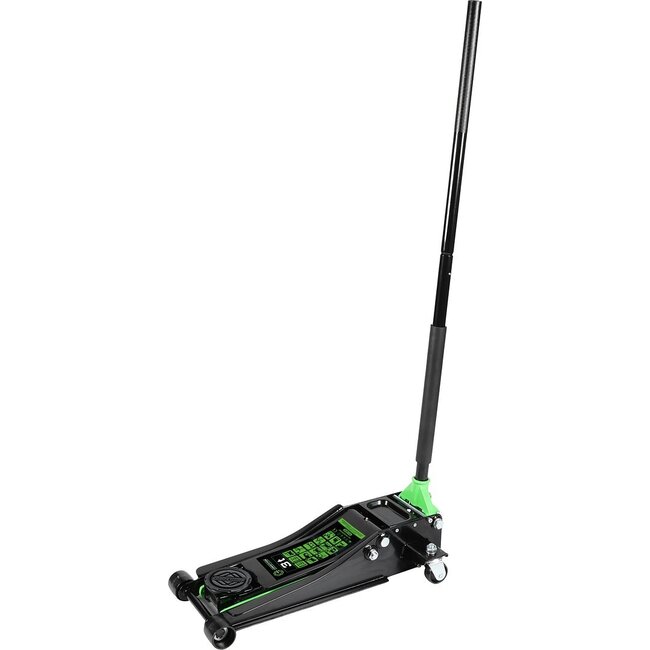 Zeer robuuste stalen-werkplaatskrik. Zeer geringe onderrijddiepte van 75 mm voor gebruik bij verlaagde voertuigen. Groot raakvlak op de grond voor stabiele ondersteuning. Heffen d. M. V pomp- en voethendel mogelijk. Met voetpedaal voor de overbrugging van