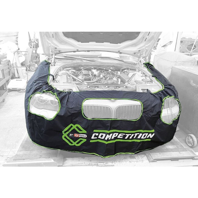 Universeel toepasbaar. Eenvoudig te verzorgen. Beschermd beide spatschermen, grille, bumper en lampen tijdens de reparatie- resp. Onderhoudswerkzaamheden. Universele maat past op kleine en middenklasse auto's. Grote transparante openingen maken het contro